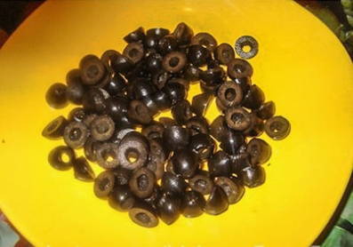- Ook doen we hier kool, gesneden augurken en olijven. Laat de ingrediënten nog 10 minuten sudderen.