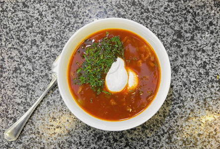 - Giet hete mengelmoes in geportioneerde borden, voeg verse kruiden, zure room toe en serveer. Eet smakelijk!