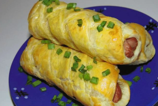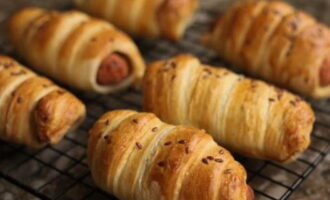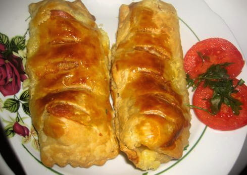 - Blozende en aromatische worstjes in een bladerdeeg gistvrij deeg zijn klaar! Het is tijd om te genieten van de smaak van het bereide gerecht!