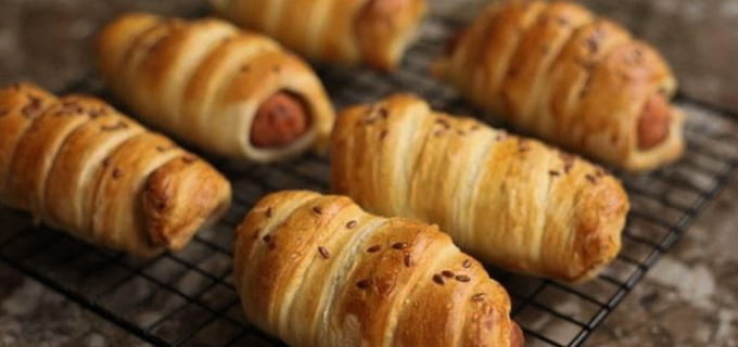 Op smaak gebrachte worstjes in gistbladerdeeg zijn klaar!