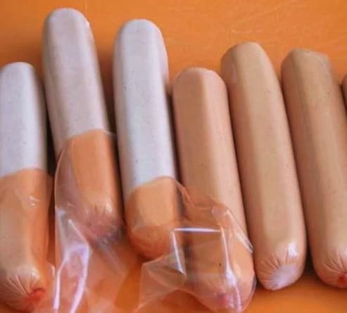 We halen de worsten uit de verpakkingsfolie.