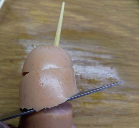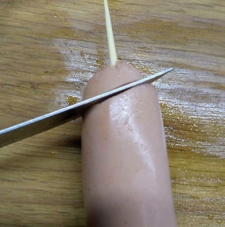 - Maak vanaf de bovenkant een incisie naar beneden in de worst.