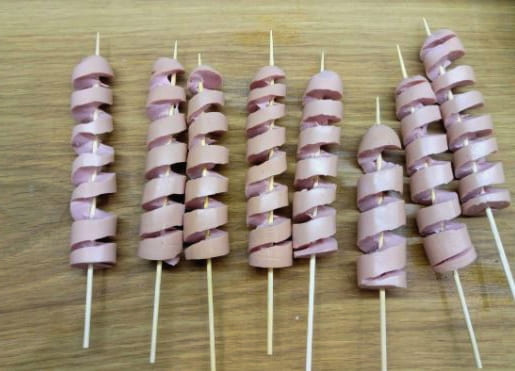 - Bereid alle worsten op spiesjes op dezelfde manier.