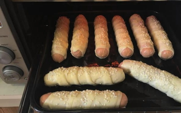 - Deze stappen moeten worden herhaald met alle worsten en deeg.