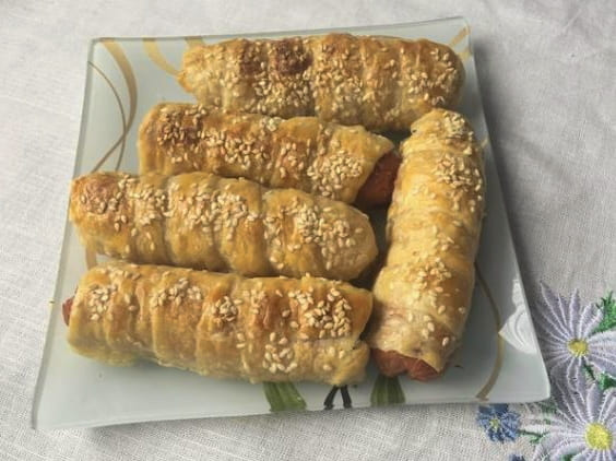 - Een heel lekker en eenvoudig recept voor worstjes in bladerdeeg met sesamzaadjes
