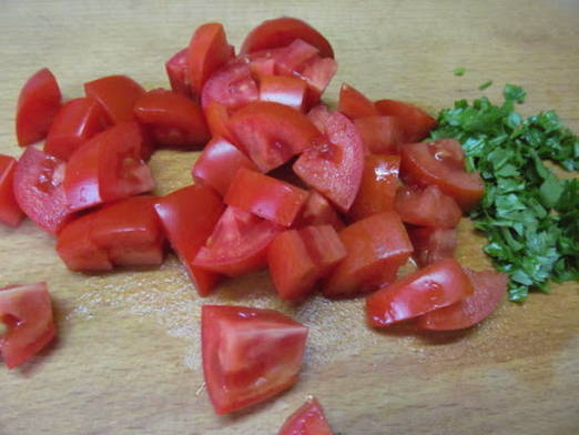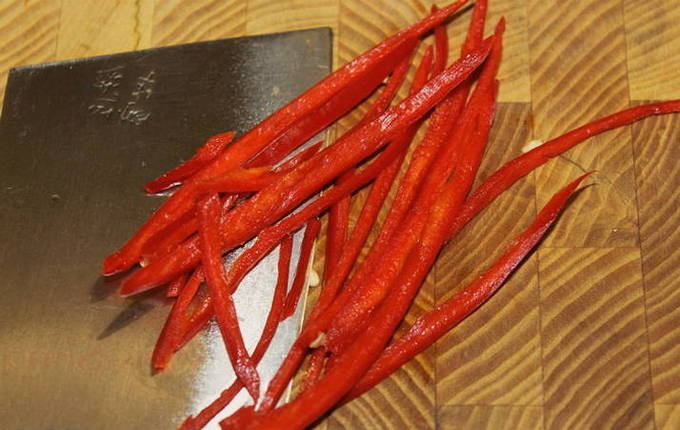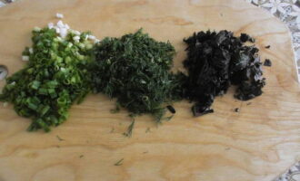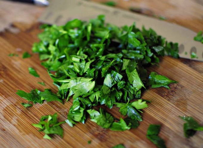 - De rest van de groenten kan in reepjes of blokjes worden gesneden, hete pepers en peterselie, gehakt met een mes.