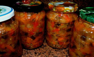 Een klassiek recept voor bakken met aubergine voor de winter, bij de bereiding waarvan azijn wordt gebruikt. Groenten worden in marinade geweekt, blijven mals en krokant en kunnen op een koele plaats heel goed bewaard worden.