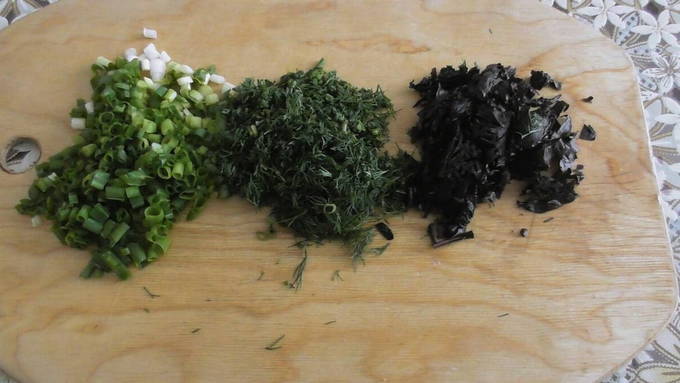 - De rest van de groenten kan in reepjes of blokjes worden gesneden, hete pepers en peterselie, gehakt met een mes.