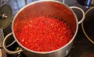 We maken de bessen van de takken schoon, spoelen ze af en dompelen ze onder in een pan. Giet een eetlepel water in het product.