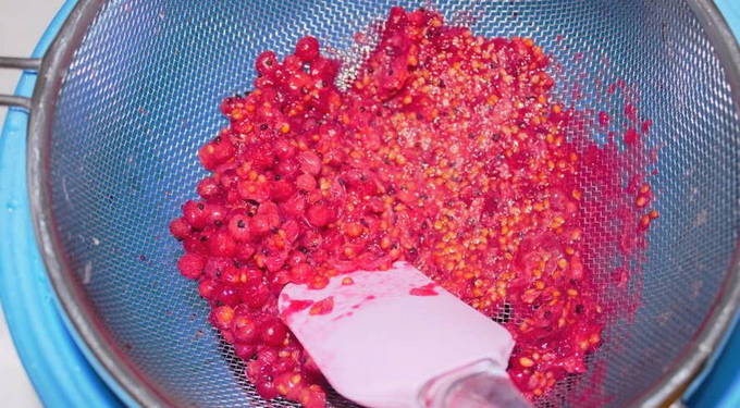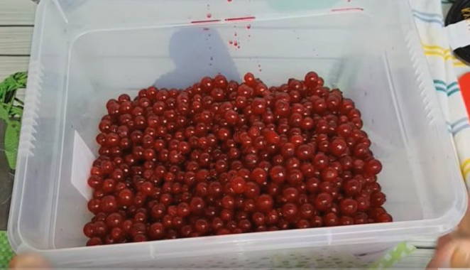 - Sorteer de rode bessen zorgvuldig en spoel ze af onder water. Laat het product drogen.