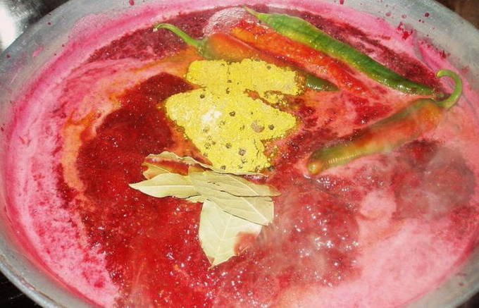 - We sturen gewassen rode aalbessen naar de hete massa. We blijven de inhoud mengen tot een dikke homogene samenstelling. Voeg op het einde peper en zout toe.