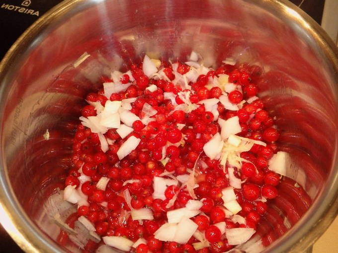 Met rode aalbessen en knoflook kan een ongelooflijk lekkere, aromatische en pittige huisgemaakte saus worden gemaakt. Deze lichte traktatie is geschikt voor winterse bereidingen en zal een uitstekend gezelschap zijn voor vleesgerechten.