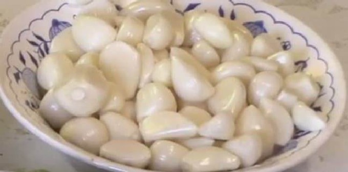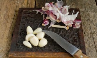 Verdeel de knoflookkoppen in tanden, schil. Als de koppen klein zijn, neem er drie, als ze groot zijn, zijn twee voldoende.
