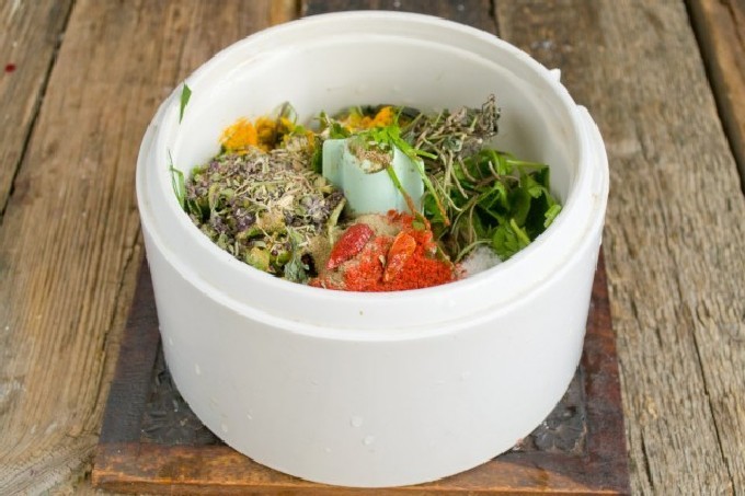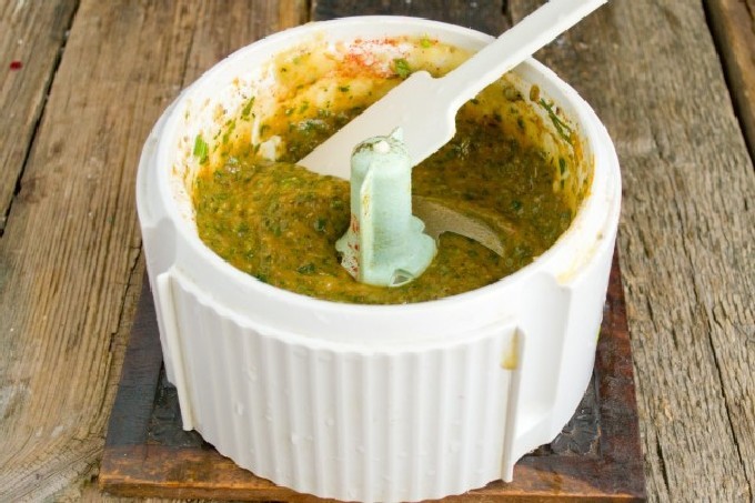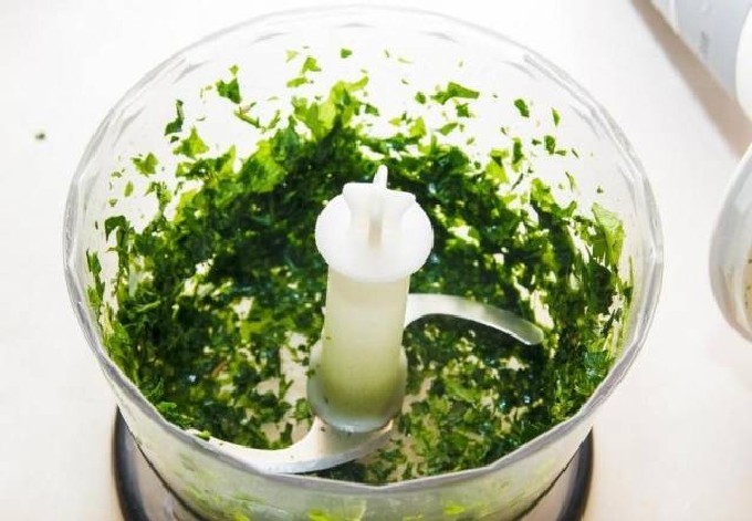 - Week de kruiden 5 minuten in koud water, spoel ze goed af onder stromend water en maal ze fijn met een blender.