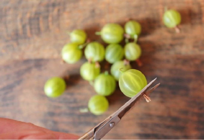 - Was de kruisbessen en verwijder de steeltjes.