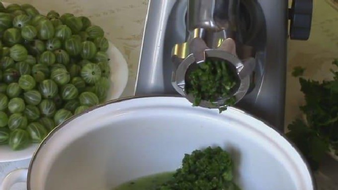 Deze unieke no-boil saus van groene en licht onrijpe kruisbessen en knoflook duurt niet lang. Maar hoe zal hij u in de winter behagen in combinatie met vleesgerechten. En niet alleen vlees, het past ook goed bij vis, aardappelen en andere groenten. Kruisbes is een gezonde en vitaminebes, wat erg belangrijk is in de winter.