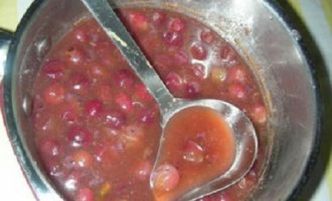 Als de zoete jam rijkelijk gekookt is en de kruisbes nog over is, maak dan een funky saus voor vlees, gevogelte en kebabs. De saus zal pittig blijken te zijn, met een aangename zuurheid en zal u zeker bevallen in de winter.