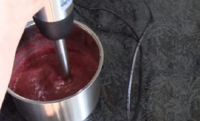 Doe de bessen op een zeef en laat het vocht weglopen. (Trouwens, je kunt de siroop niet gieten, maar suiker toevoegen en een heerlijke compote krijgen.) Breng de bessen over naar een blender en hak ze in puree.