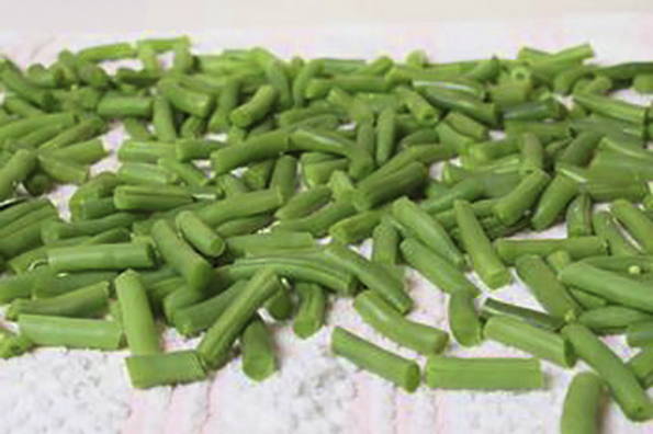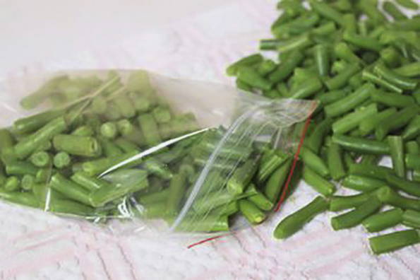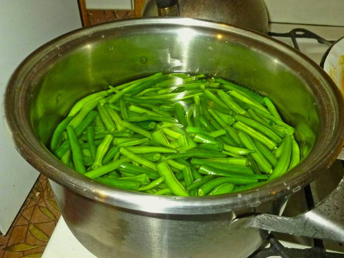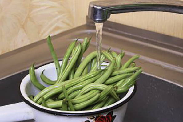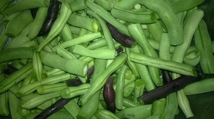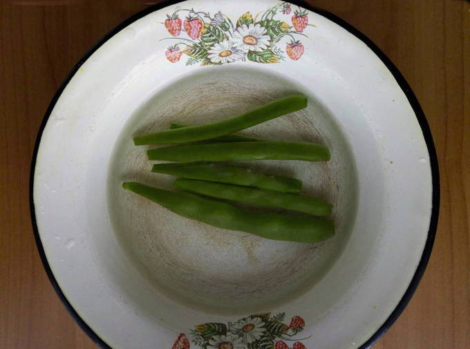 - Sorteer de bonen en laat alleen mooie groene peulen achter, zonder vlekken en beschadigingen.