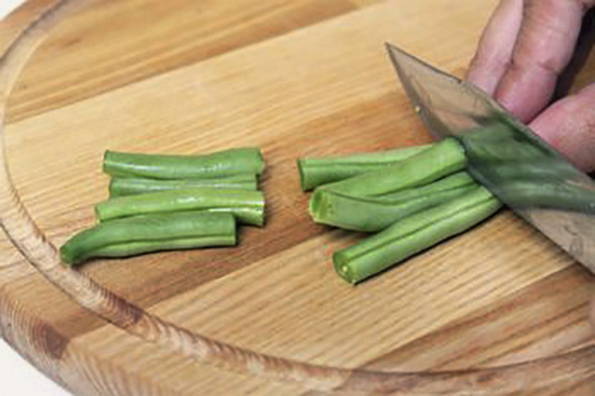 - Snijd de peulen vervolgens in stukken van 3-4 centimeter.