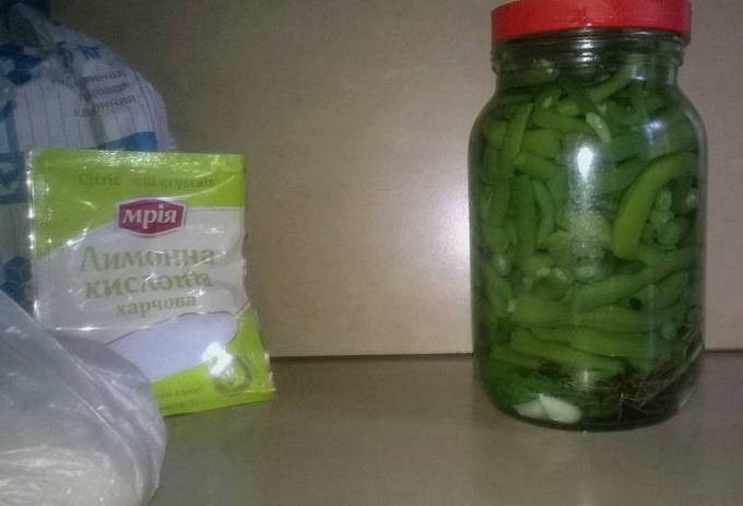 - Giet water in een pan, voeg zout en suiker toe, kook de marinade tot de zandkorrels oplossen. Voeg vervolgens citroenzuur toe, roer en giet de kokende marinade over de bonen.