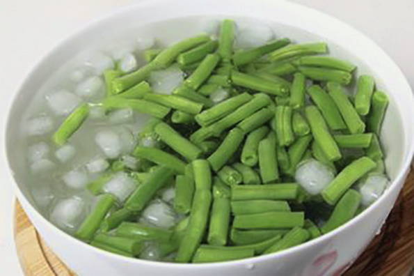 - Gebruik een zeef om de bonen uit de pot te halen en plaats ze onmiddellijk in ijswater.