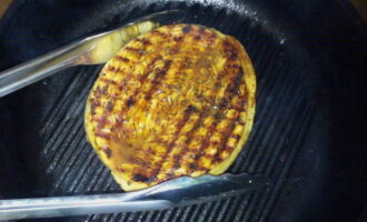 - We zetten de pan op het fornuis, gieten er plantaardige olie in en leggen de voorbereide gepaneerde steaks neer. Bak tot er een heldere gouden korst verschijnt.