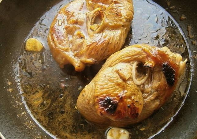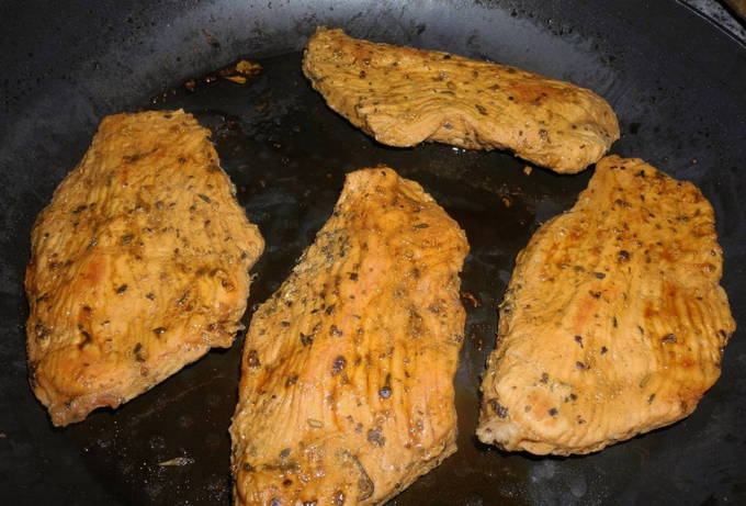 Stapsgewijs recept voor het koken van kalkoendijbiefstuk in een pan