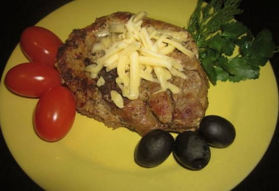 Een snel en gemakkelijk idee voor een stevig, zelfgemaakt diner - steaks met kalkoenbotten. Het vlees is sappig van binnen en krokant van buiten. Verras uw dierbaren met een helder en hartig gerecht!