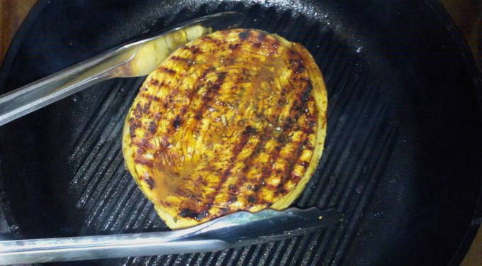 Verhit de grillpan en bestrijk deze met boter. We zetten de ingelegde steaks hier.