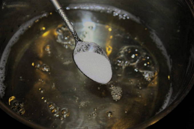 - Giet het hoofdingrediënt in een pan en vul deze met water. Breng de inhoud van de pan aan de kook en kook daarna nog 4 minuten.