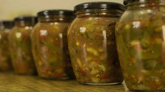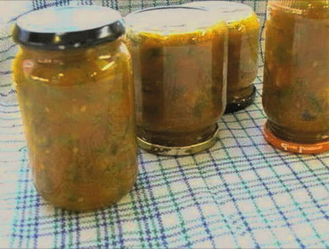 - Zout en peper het gerecht. We mengen en sturen naar voorgereinigde en warmtebehandelde potten. We rollen ze op met deksels en laten ze, door ze ondersteboven te draaien, een dag onder een dekentje liggen.