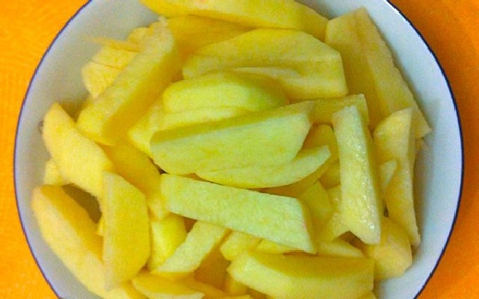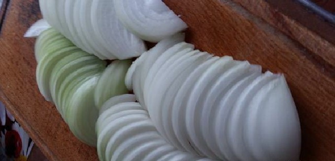 Pel de ui, spoel af en snij in kleine blokjes. Bak in een hete koekenpan met hete olie. Bak tot ze goudbruin zijn, af en toe roeren.