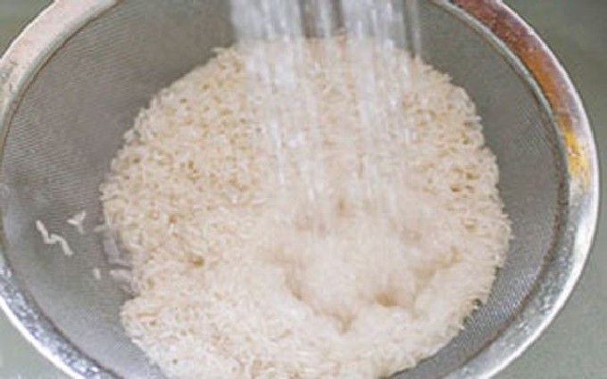 - Spoel de rijst af met koud water. Sorteer de noten van het puin en droog ze 10 minuten in een pan zonder olie.