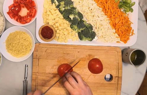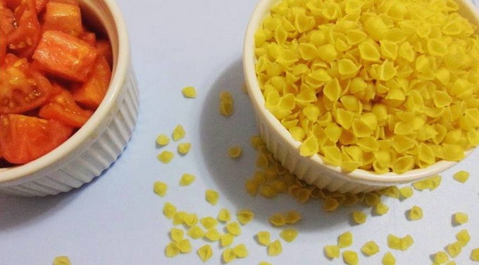 - Ondertussen zullen we de benodigde hoeveelheid vermicelli meten en de tomaten in blokjes snijden, nadat we de schil hebben verwijderd.