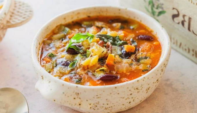 Plantaardige minestronesoep met bonen