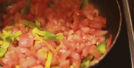- Laat groenten een paar minuten sudderen, tot ze gedrenkt zijn in olijfolie en een aroma beginnen af te geven.