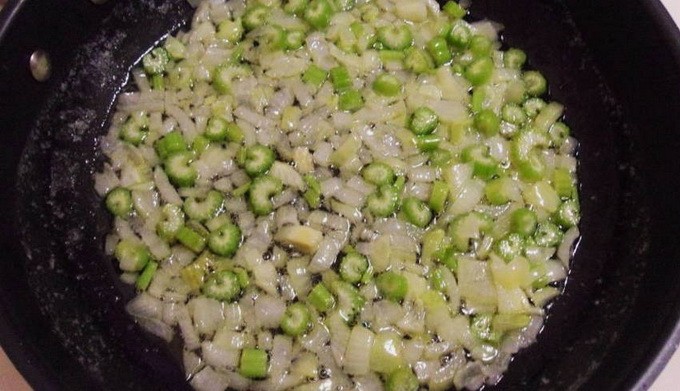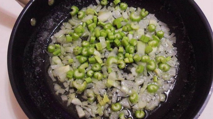 - Voeg er dan bleekselderij aan toe en ga verder met frituren.