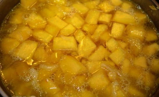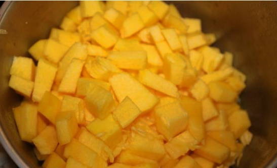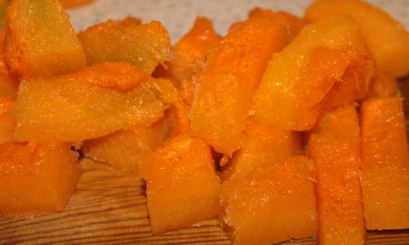 - Hetzelfde doen we met pompoenblokjes. We kwijnen een paar minuten weg.