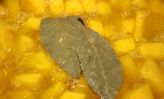 - Zout het werkstuk en vul het aan met laurierblaadjes.