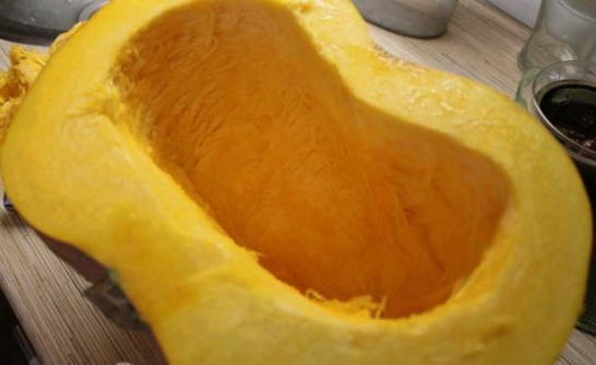 - We reinigen de pompoen van de schil, zaden en pulp.