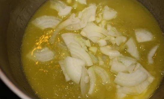 - We warmen een pan op met boter. Fruit hier de ui en de helft van de geraspte gember en knoflook voor ongeveer een minuut.