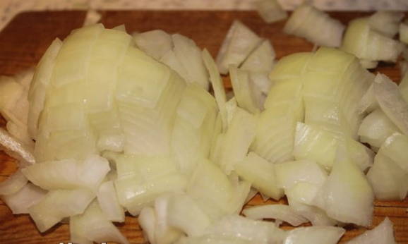 - Snijd vervolgens elk ingrediënt in kleine blokjes.
