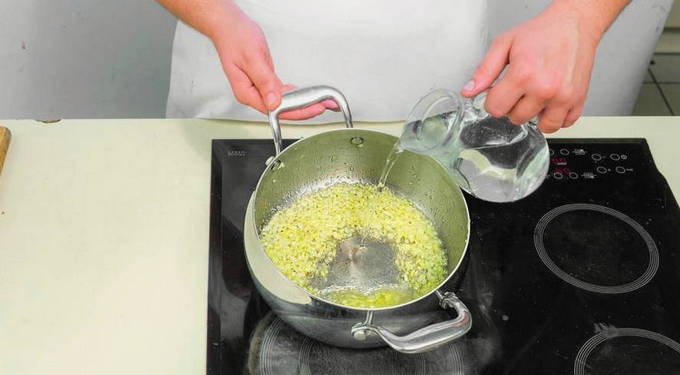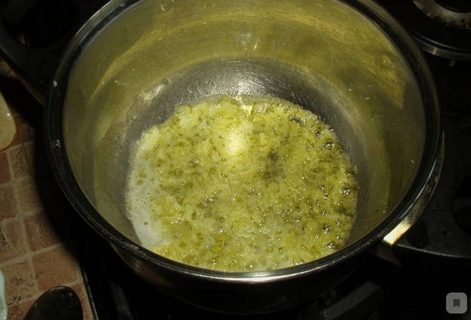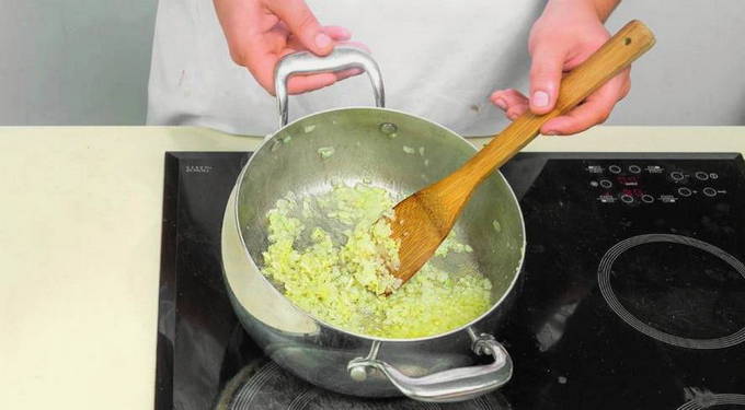 We sturen producten naar de pan met boter. Kook op middelhoog vuur ongeveer 5 minuten.