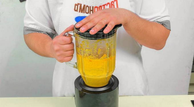 - Voeg de afgewerkte traktatie toe met zwarte peper en klop met een blender.
