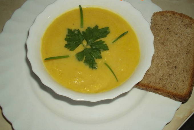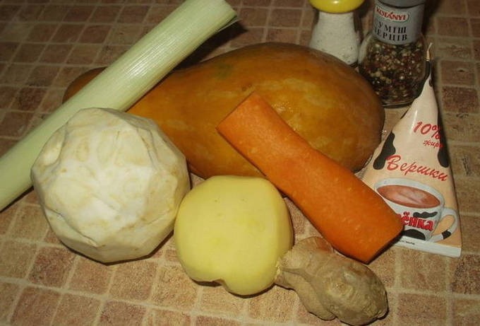 Voeg gemberwortel toe aan de pompoenpureesoep voor een heldere, pittige smaak. Dit gerecht zal een voortreffelijke oplossing zijn voor uw diner. Bovendien zal de traktatie u verrassen met nuttige en voedzame eigenschappen.
