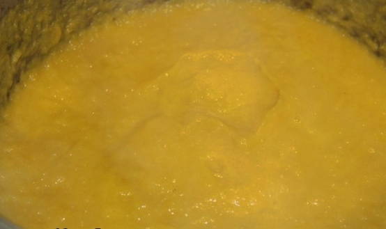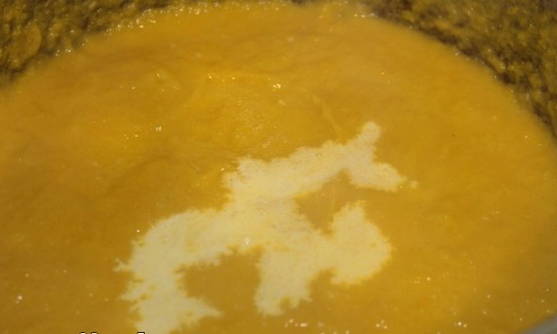 - Kook op middelhoog vuur gedurende 20 minuten en maal dan met een blender.