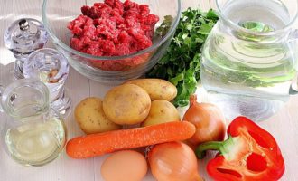 Bereid eerst alle ingrediënten voor die je nodig hebt om de gehaktballensoep te maken. Neem vers voedsel en let vooral op het feit dat er vers gehakt is. Het is beter om het zelf te koken.