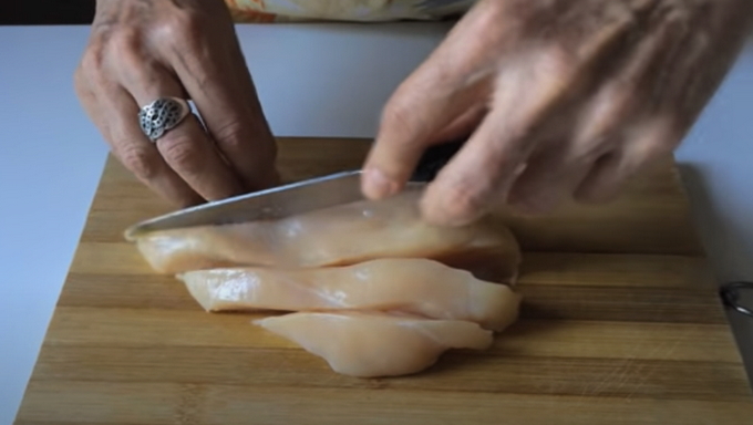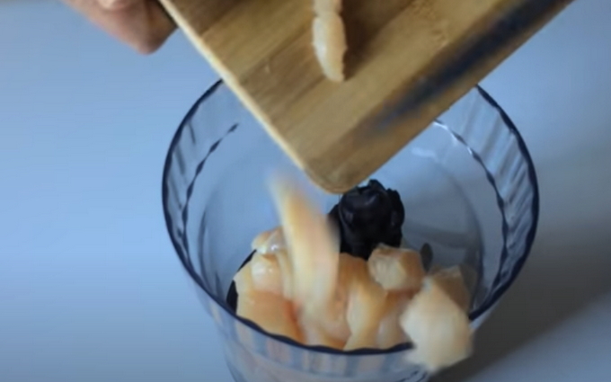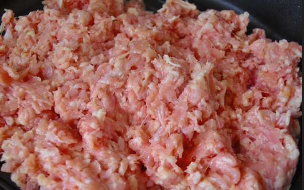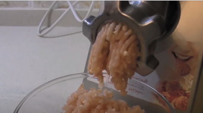 - Neem verse kip en verwijder het vel.Spoel de stukjes af onder stromend water, snijd ze in kleine stukjes en haal ze door een vleesmolen.