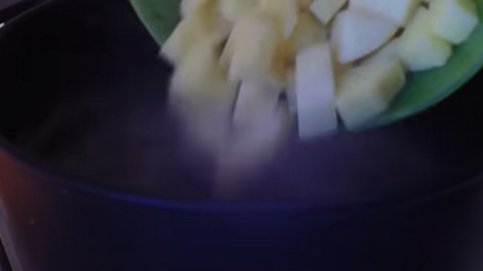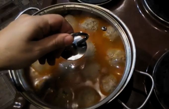 - Leg de gehaktballetjes voorzichtig in kokend water en kook ze ongeveer tien minuten. Leg daar vervolgens de in blokjes gesneden, voorgeschilde aardappelen. Doe na nog eens tien tot vijftien minuten de gefrituurde groenten in een pan met soep en kook het gerecht verder tot het volledig gaar is, en vergeet niet om het te zouten.